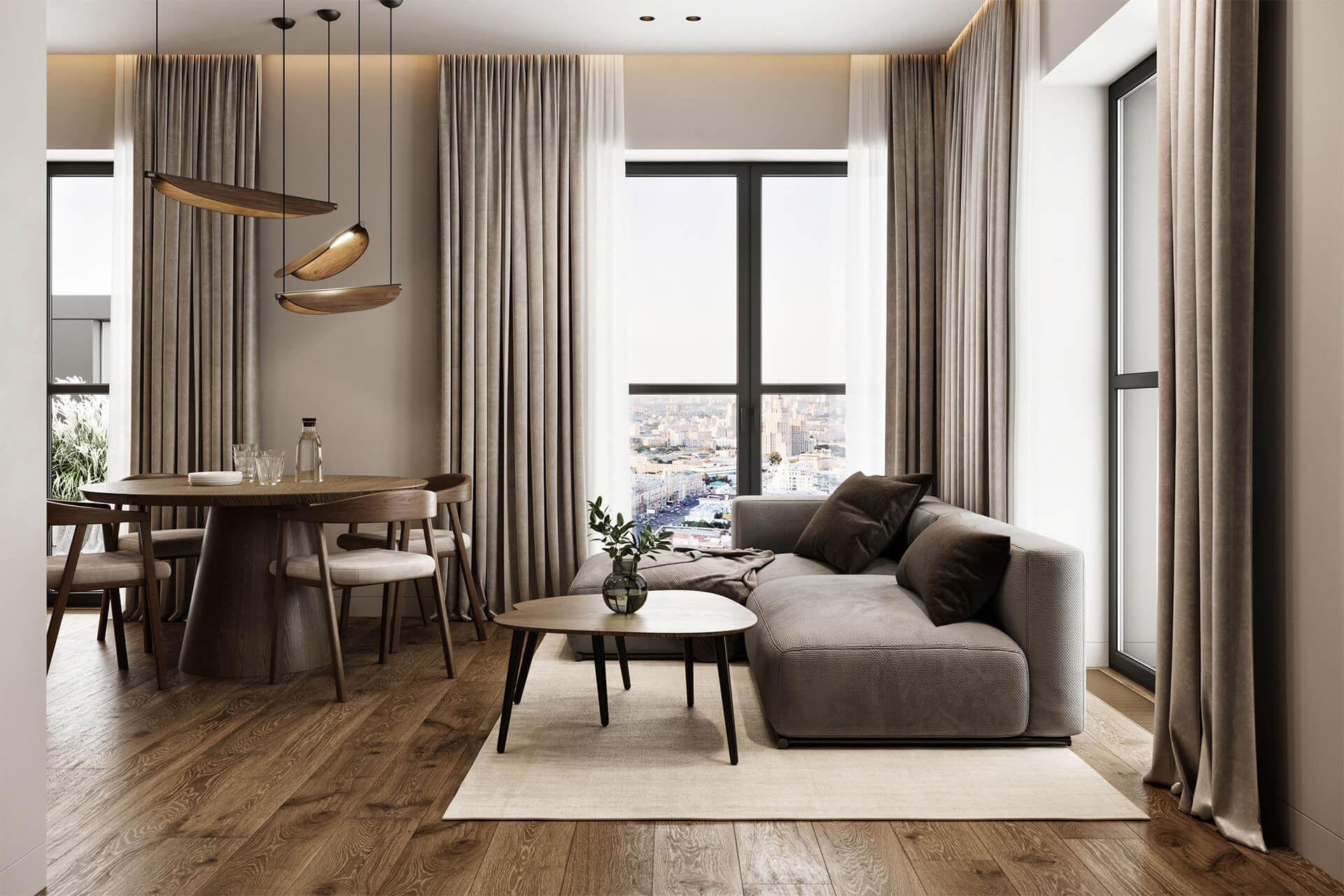 Особое внимание уделено отделке и качеству материалов. Используются экологически безопасные материалы, современные инженерные системы и элементы дизайна, которые подчеркивают стиль и элегантность интерьеров. Каждая квартира оснащена системой кондиционирования, подготовкой под умный дом и энергоэффективными решениями, что создаёт комфортные условия для жизни в любое время года.